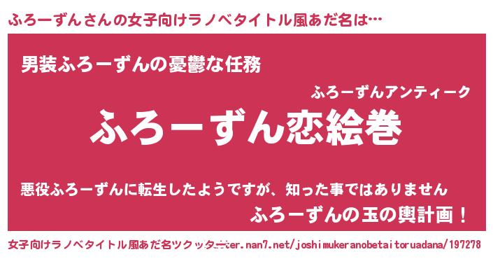 | 男性向けラノベタイトル風あだ名 | 『おまえをオタクにしてやるから、俺をふろーずんにしてくれ! 』 |