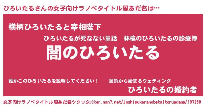 | 男性向けラノベタイトル風あだ名 | 『Re:ひろいたるから始める異世界生活』 |