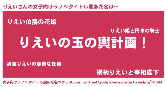 | 男性向けラノベタイトル風あだ名 | 『転生したらりえいだった件』 |