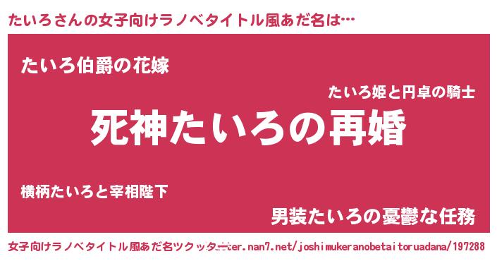 | 男性向けラノベタイトル風あだ名 | 『ノーゲーム・ノータイロ』 |