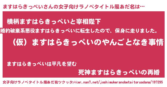 | 男性向けラノベタイトル風あだ名 | 『ますはらきっぺいの憂鬱』 |