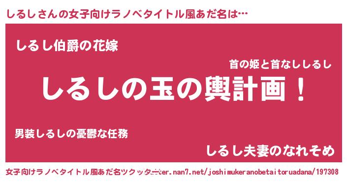 | 男性向けラノベタイトル風あだ名 | 『転生したらしるしだった件』 |