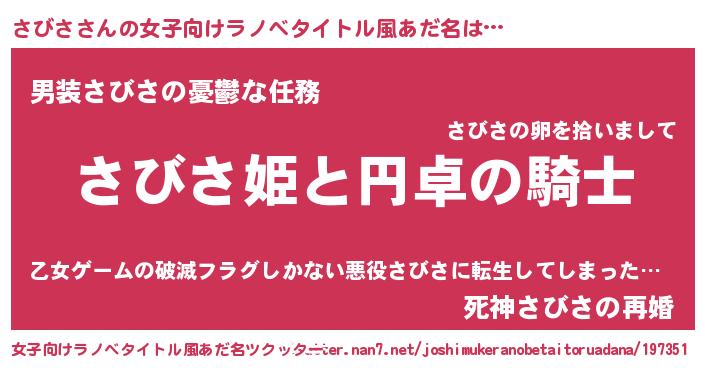 | 男性向けラノベタイトル風あだ名 | 『サビサアートオンライン』 |