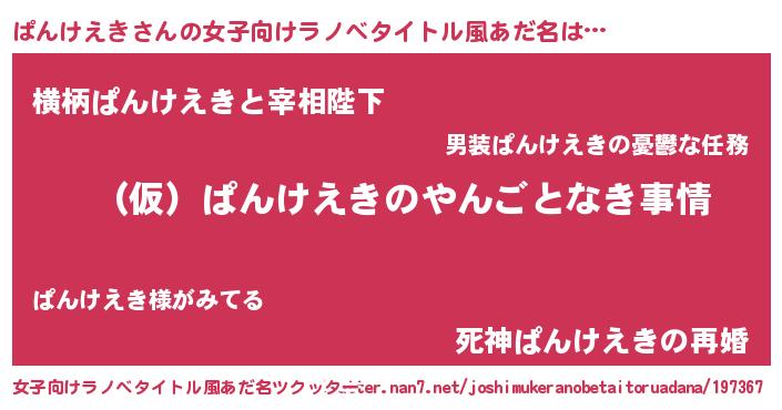 | 男性向けラノベタイトル風あだ名 | 『ぱんけえきの憂鬱』 |