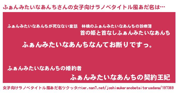 | 男性向けラノベタイトル風あだ名 | 『魔法科高校のふぁんみたいなあんち』 |