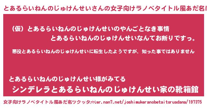 | 男性向けラノベタイトル風あだ名 | 『この素晴らしい世界にとあるらいねんのじゅけんせいを!』 |