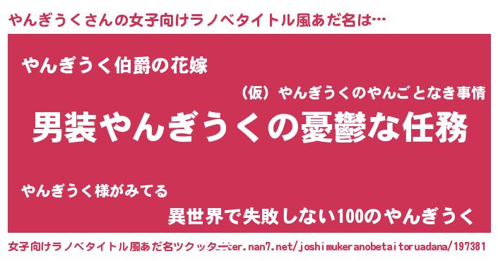 | 男性向けラノベタイトル風あだ名 | 『うちのやんぎうくが世界を掌握している!』 |