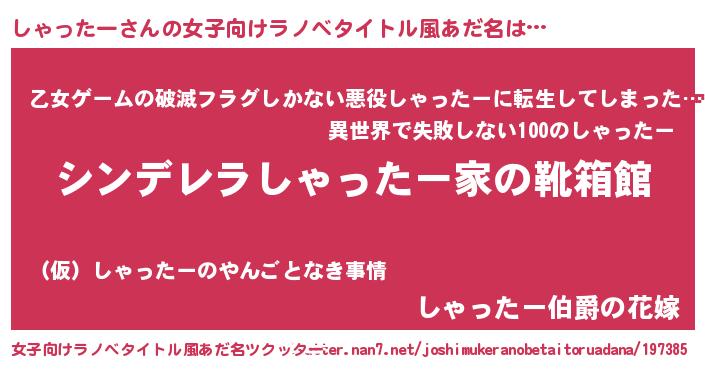 | 男性向けラノベタイトル風あだ名 | 『緋弾のシャッター』『しゃったーの憂鬱』 |