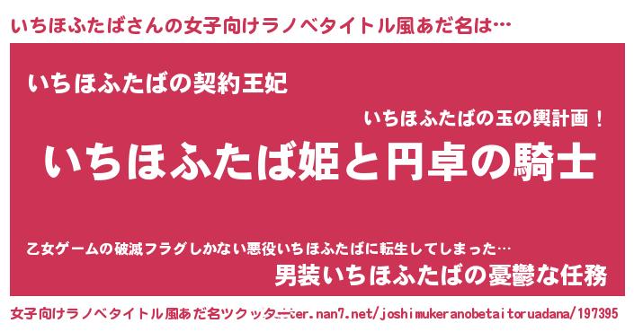 | 男性向けラノベタイトル風あだ名 | 『いちほふたばの憂鬱』 |