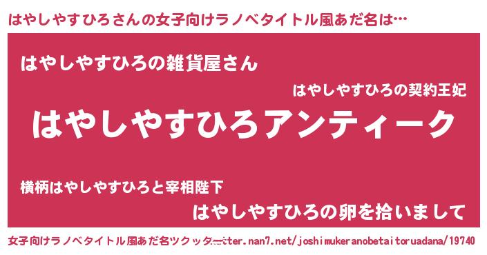 | 肩書あだ名 | 『はやしやすひろ総統』 |