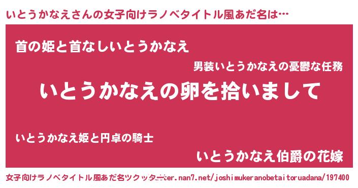 | 男性向けラノベタイトル風あだ名 | 『いとうかなえの嫁は女の子じゃないと思った?』 |