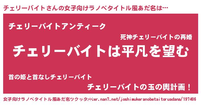 | 意味不明あだ名 | 『とにかく怪しいチェリーバイト』 |