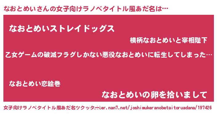 | 意味不明あだ名 | 『住所不定無職なおとめい(39歳)』 |