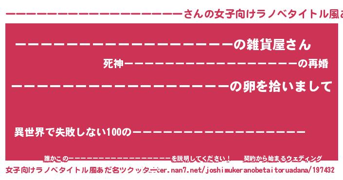 | 男性向けラノベタイトル風あだ名 | 『ーーーーーーーーーーーーーーーーーの嫁は女の子じゃないと思った?』 |