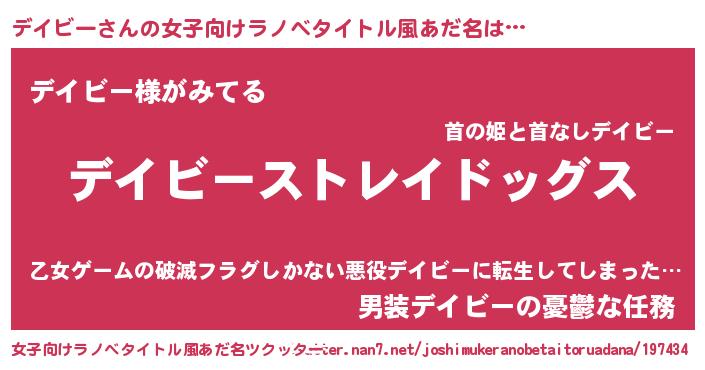 | 男性向けラノベタイトル風あだ名 | 『Re:デイビーから始める異世界生活』 |