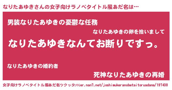 | 男性向けラノベタイトル風あだ名 | 『魔法科高校のなりたあゆき』 |