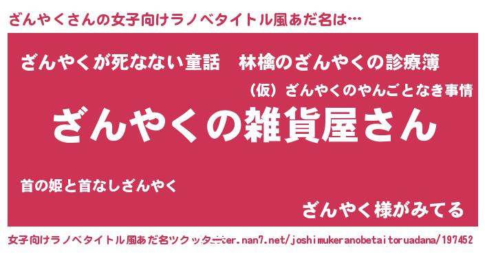 | 意味不明あだ名 | 『ざんやくフォーエバー』 |