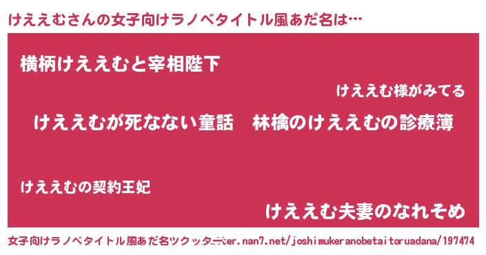 | 意味不明あだ名 | 『住所不定無職けええむ(74歳)』 |