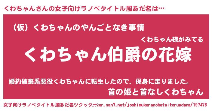 | 男性向けラノベタイトル風あだ名 | 『やはりくわちゃんの青春ラブコメはまちがっている 』 |