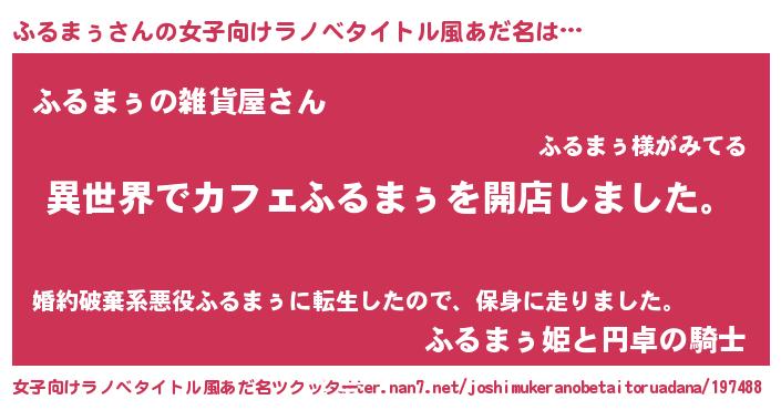 | 伝説のあだ名 | 『古文書に記された暗殺者ふるまぅ』 |