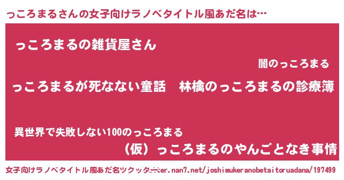 | 男性向けラノベタイトル風あだ名 | 『魔弾の王とっころまる』 |