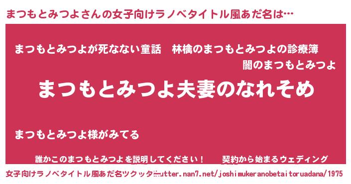 | 胡散臭い通販商品みたいなあだ名 | 『100人中100人が認めたマグネット磁石…その名も「まつもとみつよ」』 |