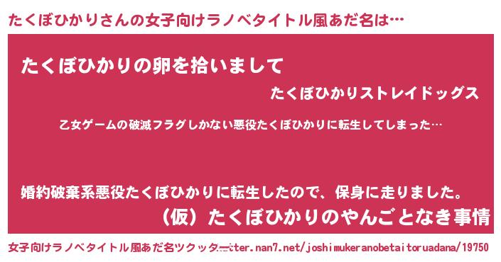 | 意味不明あだ名 | 『住所不定無職たくぼひかり(77歳)』 |