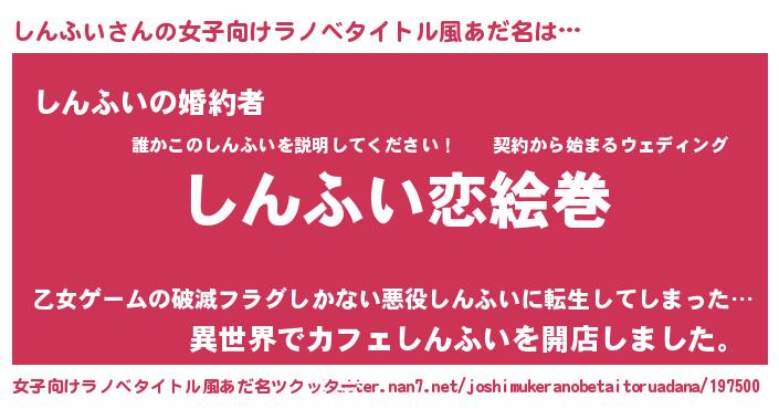 | ヒーロー風カッコイイあだ名 | 『愛の使者しんふい』『ネオシンフイ』 |