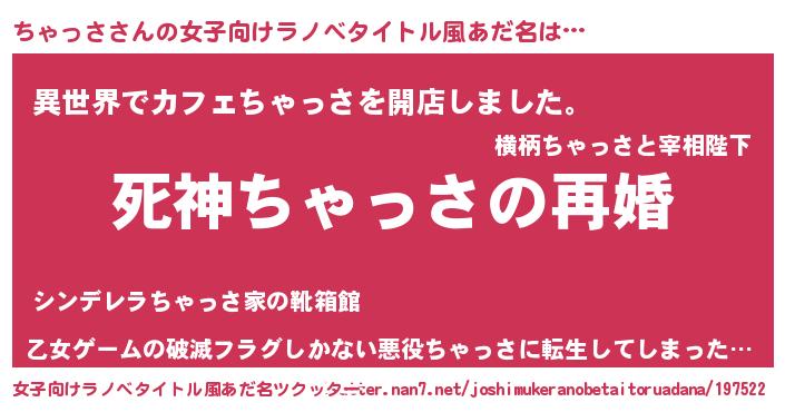 | 男性向けラノベタイトル風あだ名 | 『ノーゲーム・ノーチャッサ』 |