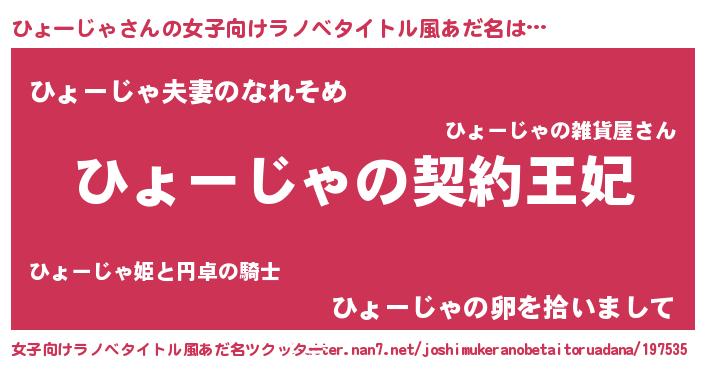 | 男性向けラノベタイトル風あだ名 | 『誰もが恐れるあのひょーじゃが、ぼくの専属メイドになるようです。』 |