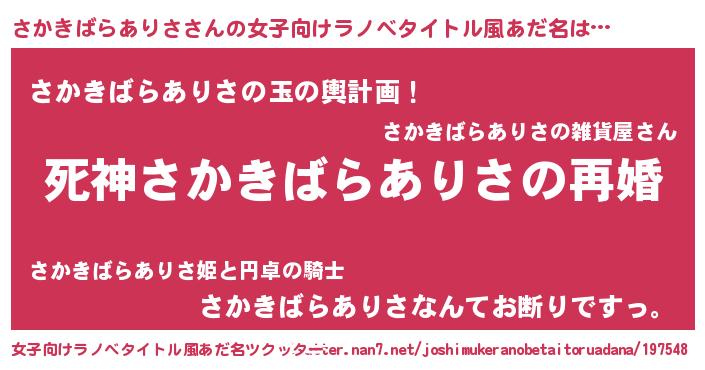 | 男性向けラノベタイトル風あだ名 | 『ノーゲーム・ノーサカキバラアリサ』 |