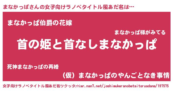 | 男性向けラノベタイトル風あだ名 | 『はたらくまなかっぱさま!』 |