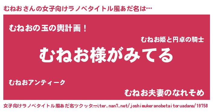 | 意味不明あだ名 | 『とにかく怪しいむねお』『自称むねお』 |