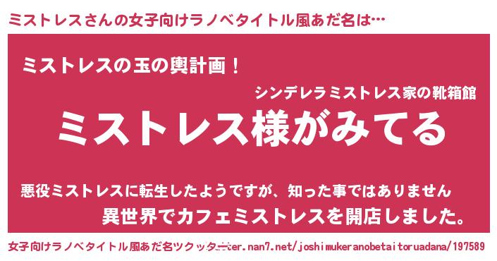 ヘコむあだ名 | 『ミスっぺ』『ミストレス(小並感)』 |