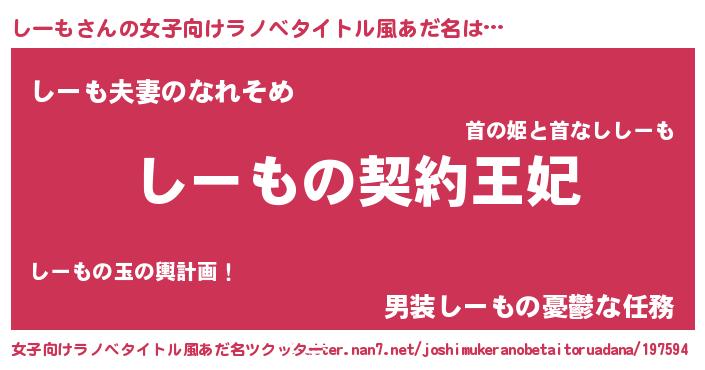 | 男性向けラノベタイトル風あだ名 | 『誰もが恐れるあのしーもが、ぼくの専属メイドになるようです。』 |