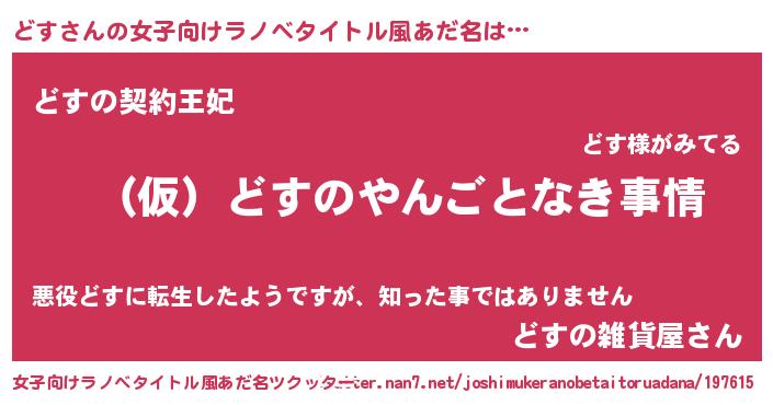 | 男性向けラノベタイトル風あだ名 | 『どすの憂鬱』 |