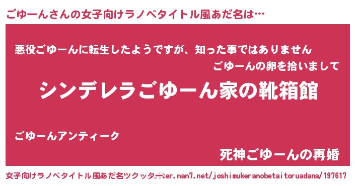 | 意味不明あだ名 | 『住所不定無職ごゆーん(11歳)』 |