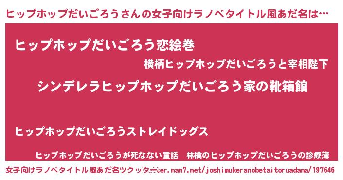 | 男性向けラノベタイトル風あだ名 | 『緋弾のヒップホップダイゴロウ』 |