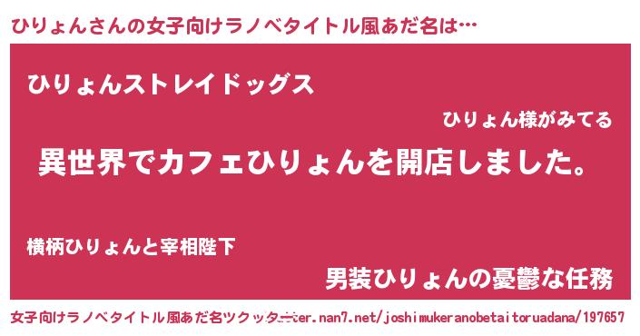 | ヘコむあだ名 | 『ひりょん(笑)』『ひりお』 |