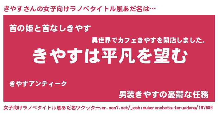 | 胡散臭い通販商品みたいなあだ名 | 『信頼と実績のサプリメント…その名も「きやす」』 |