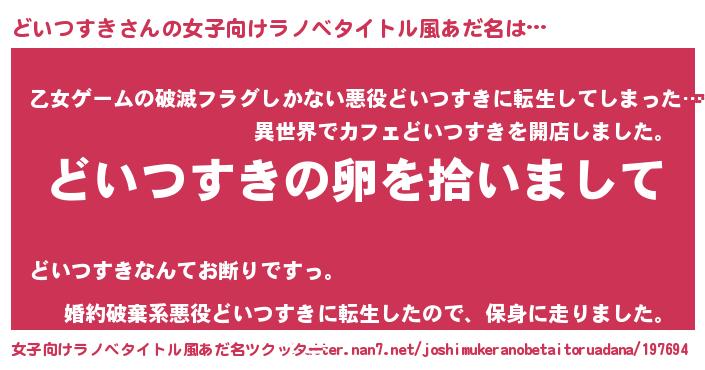| 胡散臭い通販商品みたいなあだ名 | 『伝統あるサプリメント…その名も「どいつすき」』 |