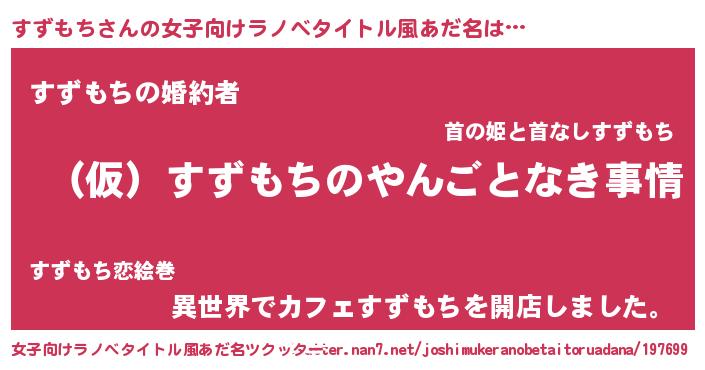 | 男性向けラノベタイトル風あだ名 | 『すずもちの憂鬱』 |