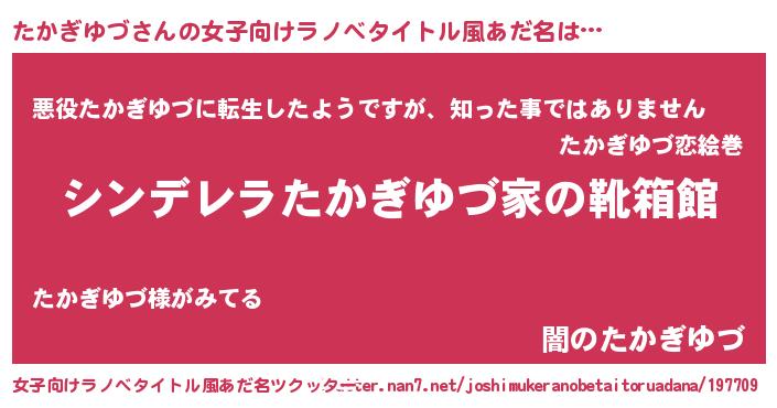 | 意味不明あだ名 | 『住所不定無職たかぎゆづ(79歳)』 |