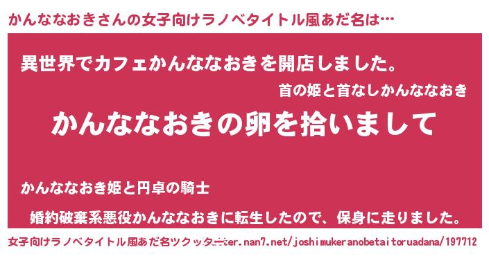 | 男性向けラノベタイトル風あだ名 | 『ダンジョンにかんななおきを求めるのは間違っているだろうか』 |