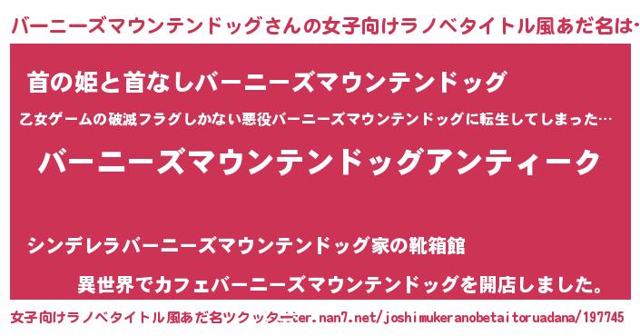 | 男性向けラノベタイトル風あだ名 | 『魔法科高校のバーニーズマウンテンドッグ』 |