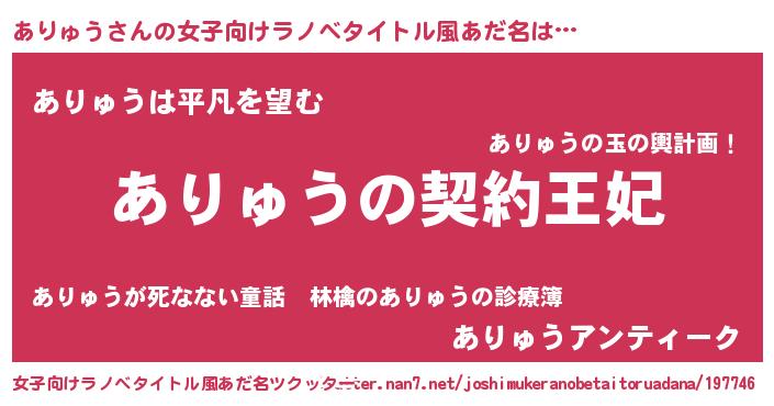 | 胡散臭い通販商品みたいなあだ名 | 『来世でも幸せになれる健康食品…その名も「ありゅう」』 |