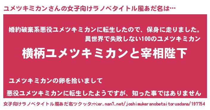 | 意味不明あだ名 | 『なめこ科ユメツキミカン属』 |