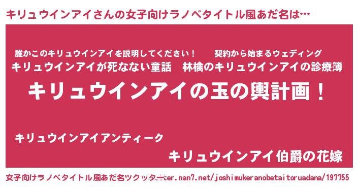 | 恥ずかしいあだ名 | 『プリティーキリュウインアイ』 |