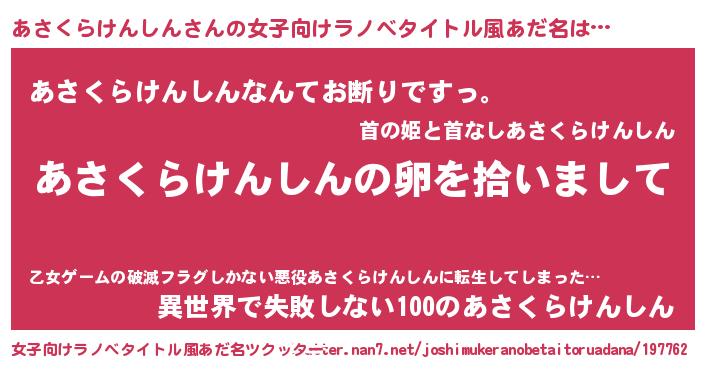 | 意味不明あだ名 | 『とにかく怪しいあさくらけんしん』 |