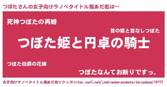 | 男性向けラノベタイトル風あだ名 | 『ツボタアートオンライン』 |
